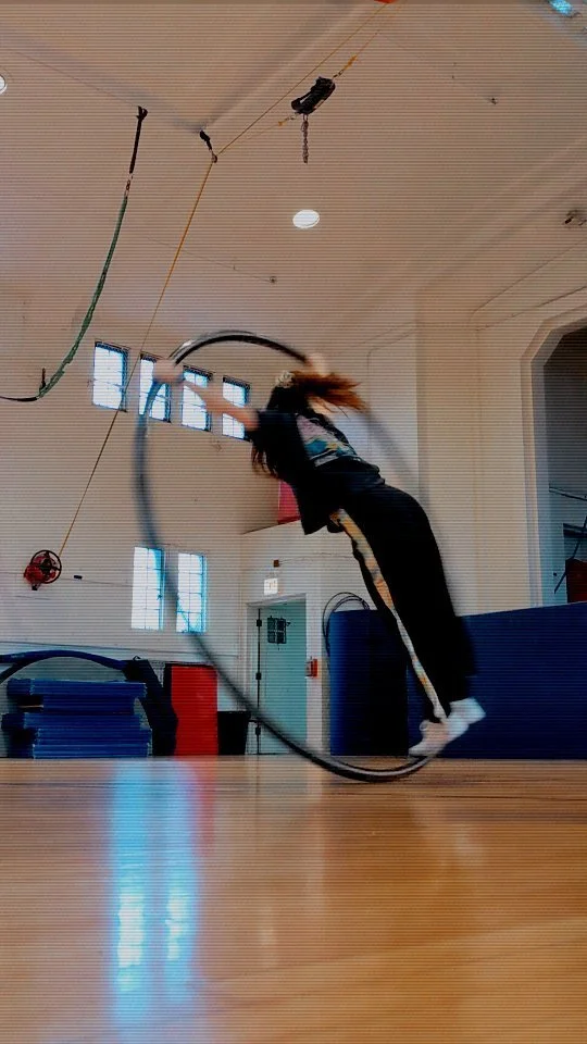 Hayley was introduced to aerial arts while studying dance at Oberlin College, and once she started to climb, she never looked down! Currently residing in Chicago, IL, Hayley is a circus generalist who is just as happy spinning through the air as she is rolling on the ground. As a soloist, Hayley performs on aerial fabric and cyr wheel, and dabbles in juggling and handstands. True to her background as a dancer, she fosters her love of collaboration through synchronized silks performances with fellow dancer Rachel Nesnevich, and as a duo trapeze porter for Duo Filamental with flyer Rachel Webberman.